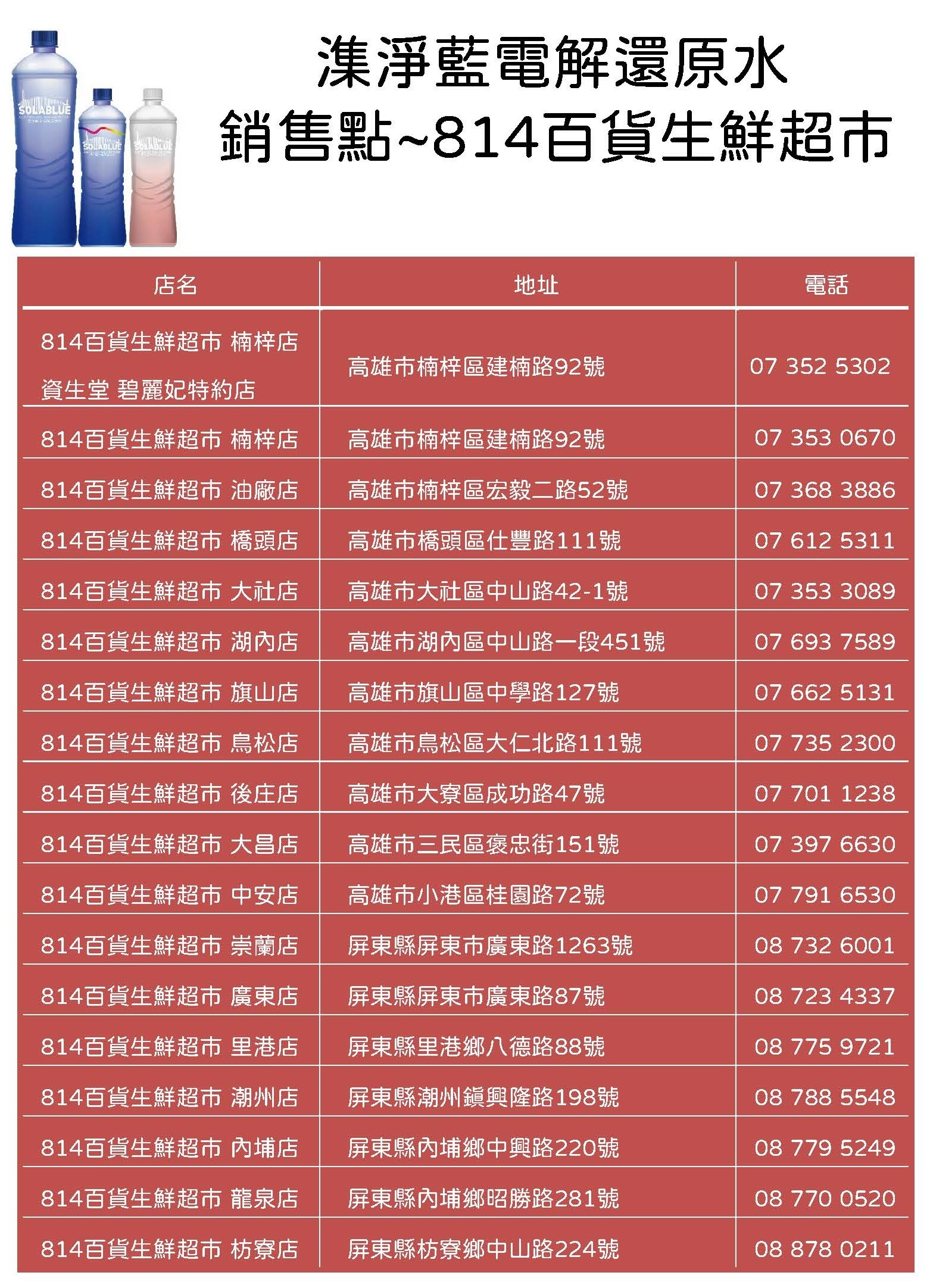 潗淨藍電解還原水 銷售點 ~ 814生鮮超巿